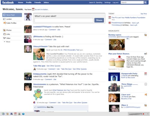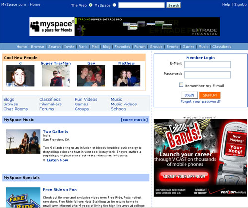 Now which one of these sites is more simplistic? MySpace is a seriously cluttered design. Facebook is just much more user friendly. Having the ability to add music to your site and customized flashy backgrounds based off your favorite band or movie is all well, but the fact is that the average Joe doesn’t want that. They want a simplistic, basic site with big descriptive buttons/links, and a main page that doesn’t take about ten minutes to load on a sub-par computer.