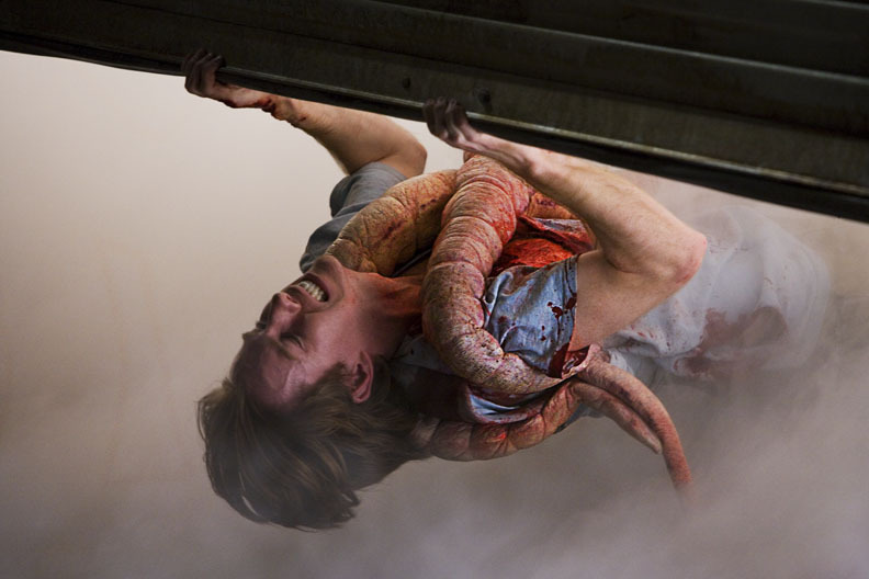 If you don’t know who Frank Darabont is; he’s the guy who wrote and directed two of the greatest novel-to-film adaptions of all time: The Green Mile and, of course, The Shawshank Redemption. Both of those films were based off Stephen King novels (well, Shawshank was a short story), his latest film The Mist is also based off a Stephen King novel, but this time it’s the familiar King territory of horror. But despite the drastic shift in genre, the typical Darabont conventions that make him such a wonderous writer/director are still present: the deep religious undertones, inner turmoil, one team of character against another, the family center piece. It’s a brilliant film that would of been just as good even without all the creatures and beasties. It tells the story of a huge storm that unleashes a gang of weird creatures on a small town, along with a misty fog. A group of people hold up in a small supermarket to try and escape from the mist. Among them are protective father Tom Jane, a crazed Christian nutbag, an ignorant neighbour, a few hillbillies. Yeah, they’re all here; stereotypical horror characters. But don’t worry, the excellent dialogue and acting stops it from being too cliché. One of the best things about the film is Marcia Gay Harden as the crazy born again Christian. She’s the closest thing the movie has to a human villain and she’s fucking brilliant. By the half way point of the movie you really want her to die in the most horrible way possible, and there in lies the success in her performance. And then there’s the creatures themselves, weird and wonderful Guilermo Del Toro-style CGI creations fill the screen in some truely thrilling action sequences. The best is a giant sky-scraper size goliath that towers over the main characters in the final moments of the film. The Mist is a stern, efficient and unconventional horror film. The key is in the restraint – so little information is fed to the audience for so long that the film achieves a towering sense of dread and hopelessness. By the time the creatures do arrive en masse, the effect is almost overpowering. And then there’s THAT ending…disciplined and super-bleak – almost cruel, but just the right side of “weekend-ruining”. Most importantly though, it’s an ending that’s more interested in provoking than soothing. Cheap but gloriously nasty.