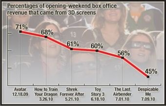 And now, Hollywood is completely in crisis! In the last few months, stocks of RealD (the company behind cinematic 3D), Dreamworks and Disney have plummeted (by something between 10-15%) because their just not making back the money that it takes to make their 3D films.