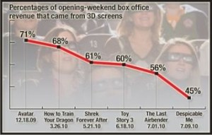 …Over the last few months there have been very soft 3D openings for Thor, Pirates of the Caribbean: On Stranger Tides, and Kung Fu Panda 2. A lot more people saw those movies in 2D than those who saw it in 3D. Now, when you’ve got child-friendly fare like Pirates of the Caribbean and Kung Fu Panda not coming up big in the 3D department…you’re in trouble. You may remember a little animated film from a while ago called Despicable Me – more people saw that in 2D as well. Then there was the case of the movie Mars Needs Moms, which took a real kicking at the Box Office. Mars Needs Moms was one of those films that was released ONLY in 3D, which means audiences weren’t given an option – they were FORCED to pay that extra money. That led critics to believe that Mars Needs Moms failure was actually audiences (even children!) rebelling against the sheer tyranny of 3D!