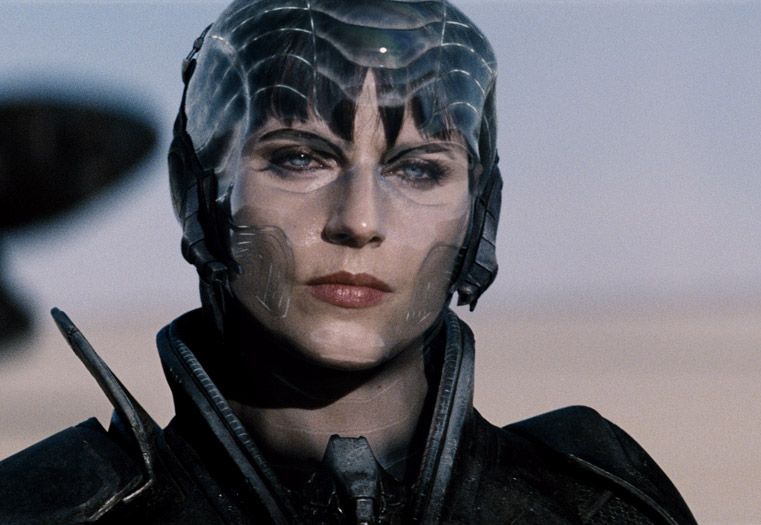 On planet Earth, Kevin Costner turns in one of the most heart wrenching performances of the year as Clark’s adopted father. He has much less screen time than Crowe, but his scenes are some of the most powerful. This isn’t Uncle Ben from the Spiderverse telling his son that he has to use his powers responsibly. This is a father acknowledging that somewhere out there Clark has another father who has another plan for him. Clark was sent here for a reason and as much as Costner doesn’t like the thought of it, he knows that his son will eventually take a path of some sort, whether that be a dark path, or the path of a hero. Michael Shannon proves once again that he is a towering presence, and that he was born to dominate the world of villainous roles. His Zod is light years away from Terrence Stamp’s equally threatening turn in Superman II. Whereas Stamp played the role with equal amounts calculating coldness and campy comic, Shannon is simply a dulldozer of rage-fueled destruction. Emitting around 90% of his performance through the sheer intensity of his eyes, Shannon’s Zod could be the best comic book villain of the year. Amy Adam’s performance is admirable as Louis Lane, however the character remains severely underwritten and as a result Adams’ performance can very easily be overlooked. The budding romance between Superman and Lane just kind of happens, with very little momentum. The biggest surprise, performance wise is definitely Antje Trau, who plays Zod’s right hand female soldier Faora. A speedy “kill first, ask questions later” foot soldier of death, Faora has quickly become the fan favorite of the film.